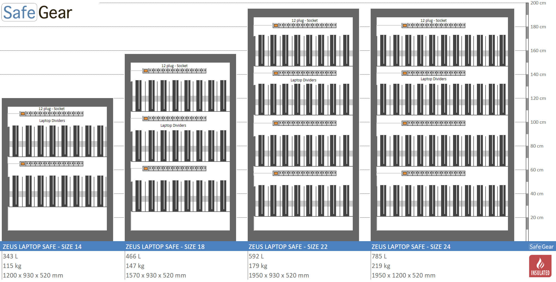 Safegear har et bredt udvalg af forsikringsgodkendte skabe til sikker opbevaring af computere, laptops, bærbare computere, iPads, Chromebooks og andre tablets.