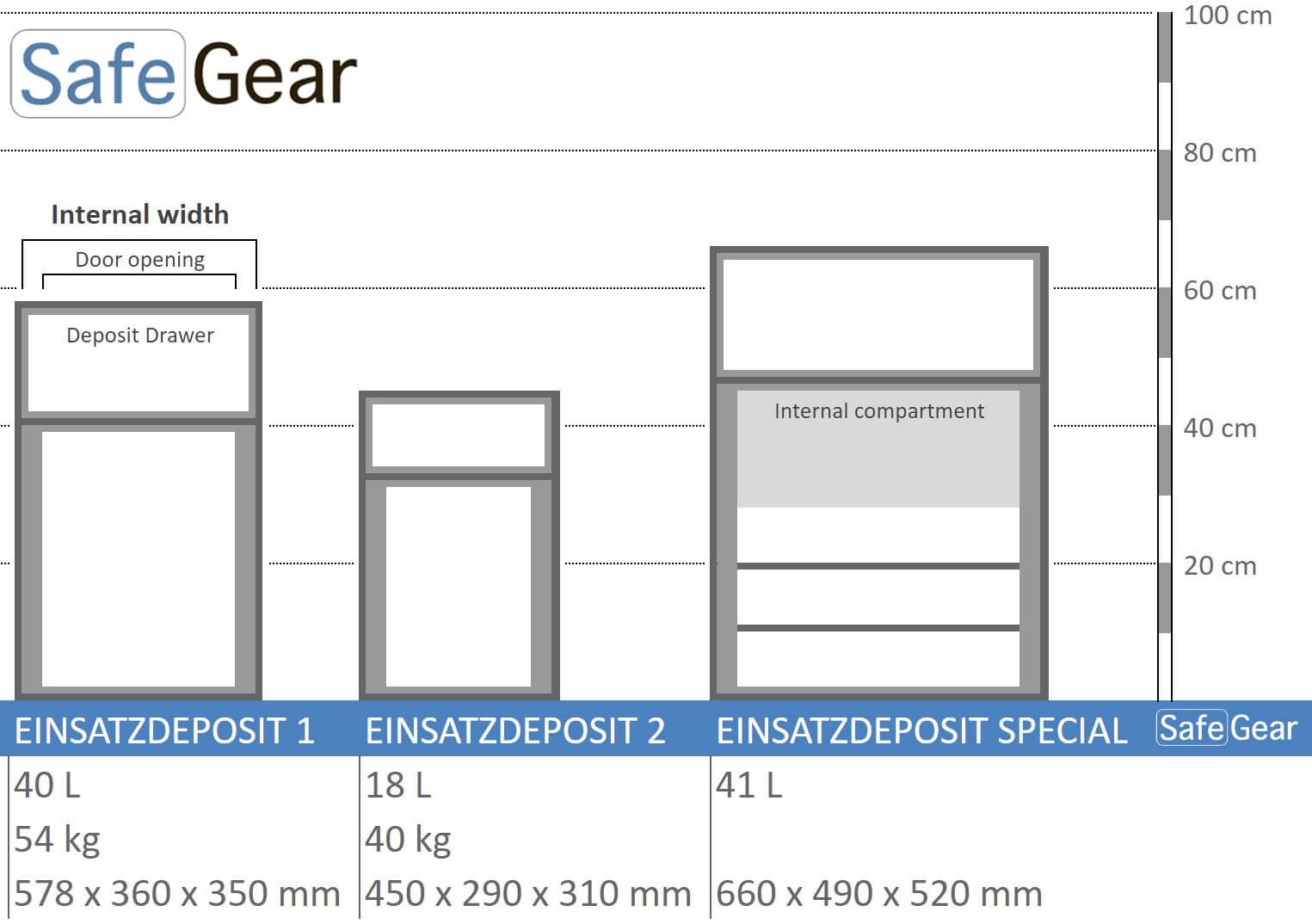 Pengeskabe med deponerings mulighed er idéelt for forretninger, fordi øverst oppe er der en deponerings låge der kan trækkes ud eller skubbes til, så personalet kan deponere omsætningen løbende. Når skuffen lukkes igen falder værdierne ned i et låst skab, som kun kan åbnes af en ansat med nøgle/kode, eller værdi selskabet der håndterer forretningens kontanter.
