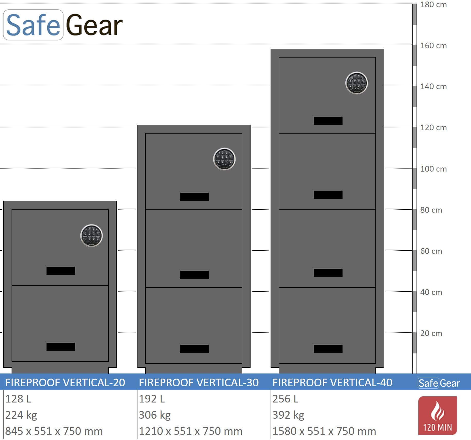 Fireproof Vertical is 120min firesistant document archive which has been certified at UL, Underwriter’s Laboratories Class 350 – 2-hour test including explosion hazard test.