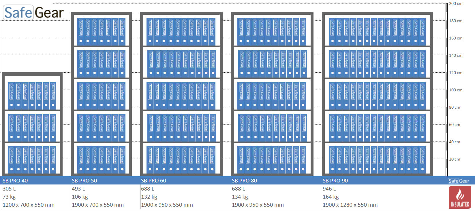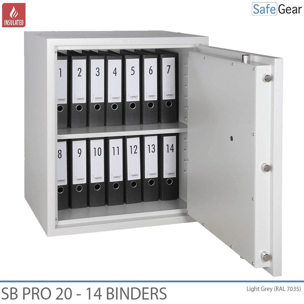 Sikker at gemme store mængder dokumenter, der har brug for beskyttelse mod brand og uautoriseret adgang. På grund af dobbeltvægget stålkonstruktion giver SB Pro pengeskab god beskyttelse mod indbrud.