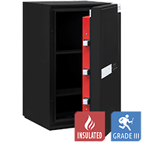 Pengeskab med brandisolering, som kan boltes til gulv eller væg.