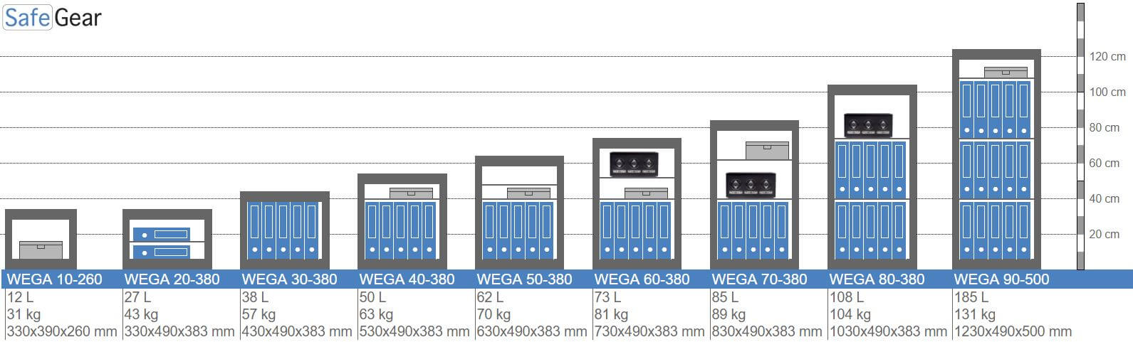 Wega - Indmuringsskab til væg med indbrudstest Grade 1. Pengeskabsdøren er sikret med kraftige rigler (Ø 25 mm) og leveres med nøgle eller kodelås. Forsikringsgodkendt pengeskab til indmuring med høj sikkerhed for kontanter, smykker, dokumenter m.v.