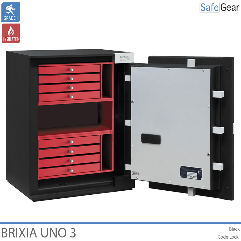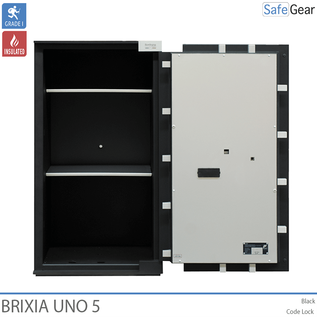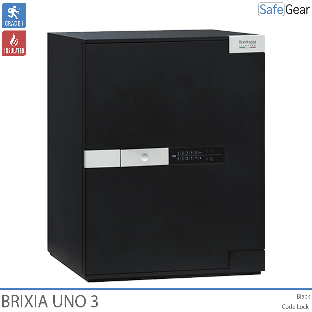 Brixia Uno værdiskabe er konstruerede til at have høj modstandsdygtighed mod såvel mekaniske som termiske angrebsmetoder, herunder en speciel barriere til at kunne modstå hammer, mejsel, boreudstyr samt andet skæreudstyr. Der er indlagt varmeafvisende materiale i vægge og dør, for ekstra beskyttelse. Pengeskabsdøren er sikret med kraftige rigler samt indgrebssikring. Værdiskabet leveres med en elegant brugervenlig kodelås, der er indfældet i døren. Håndtaget reagerer på touch og forsvinder ind i døren, når det ikke anvendes. Låsen er forsikringsgodkendt i h.t. europæisk standard.