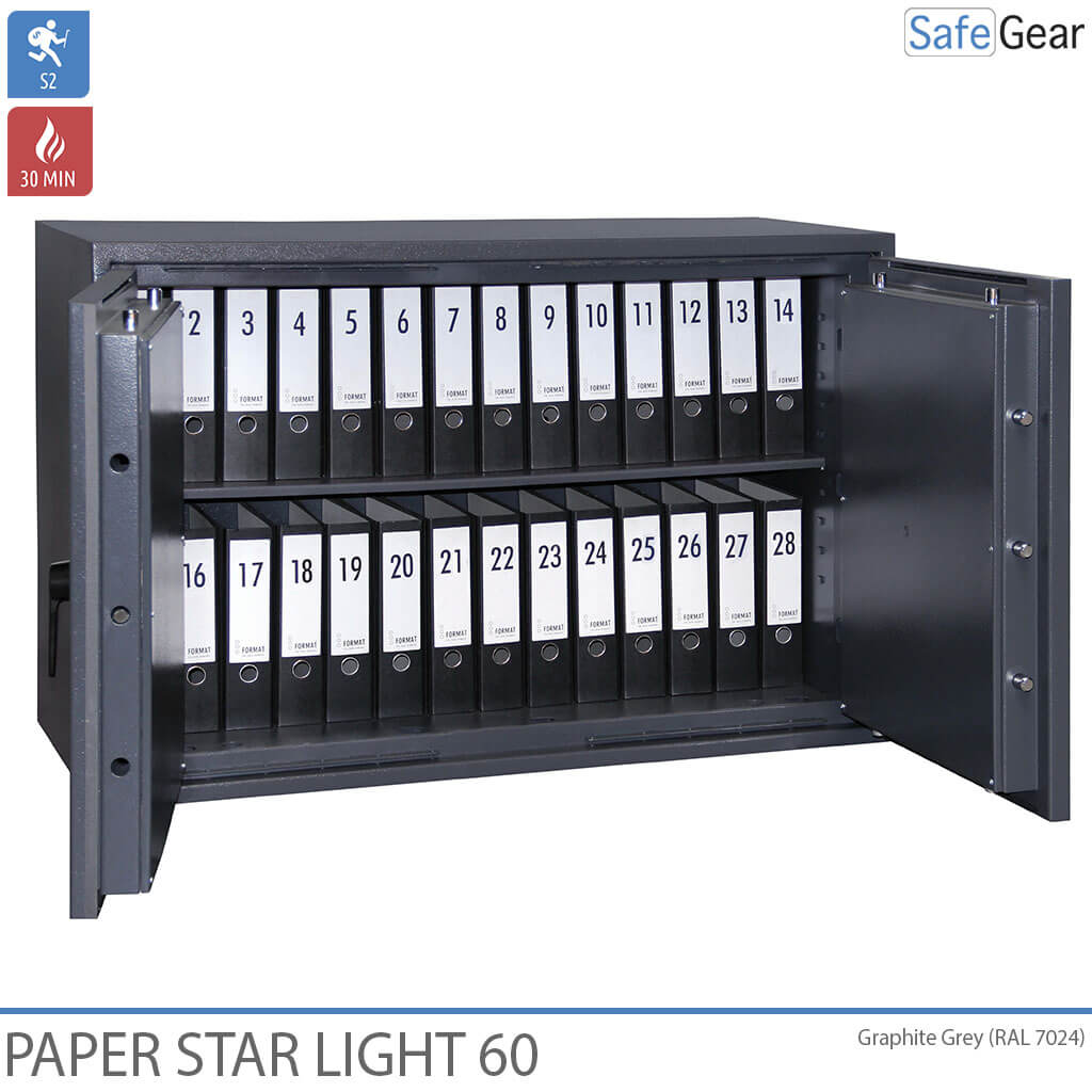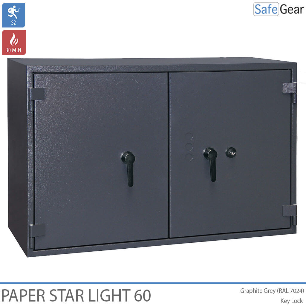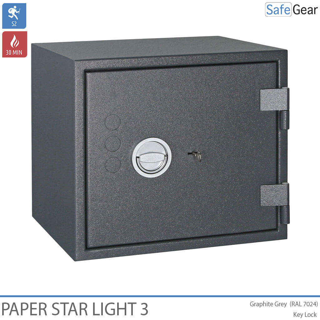Paper Star Light serien er værdiskabe indbrudstestede i Klasse S2 - svarende til Skafor Gul. Derudover er pengeskabene med 30 minutters brandtest. Certificerede hos ECB-S i Tyskland. Egnet til opbevaring af værdier, dokumenter, medicin eller andet, der kræver betryggende opbevaringsforhold. Væggene er konstrueret med en høj modstandsdygtighed mod alle kendte angrebsmetoder herunder en speciel barriere til at kunne modstå hammer, mejsel, bore- og andet skæreudstyr.