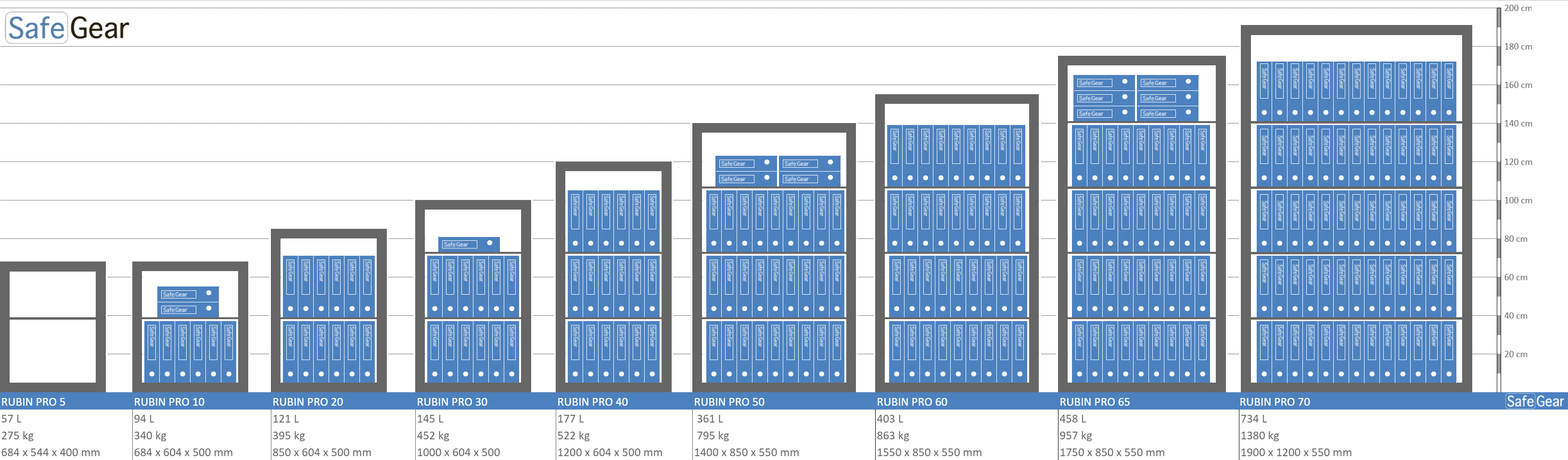 *Billederne viser Rubin Pro sikringsskab, men størrelsen på det viste pengeskab kan afvige fra dette produkt. Derfor er det vigtigt at tjekke produktegenskaberne for korrekte mål.