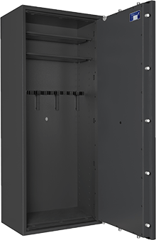 Leveres med en hylde i toppen. Indbygget sikringsskab til ammunition øverst kan tilvælges.