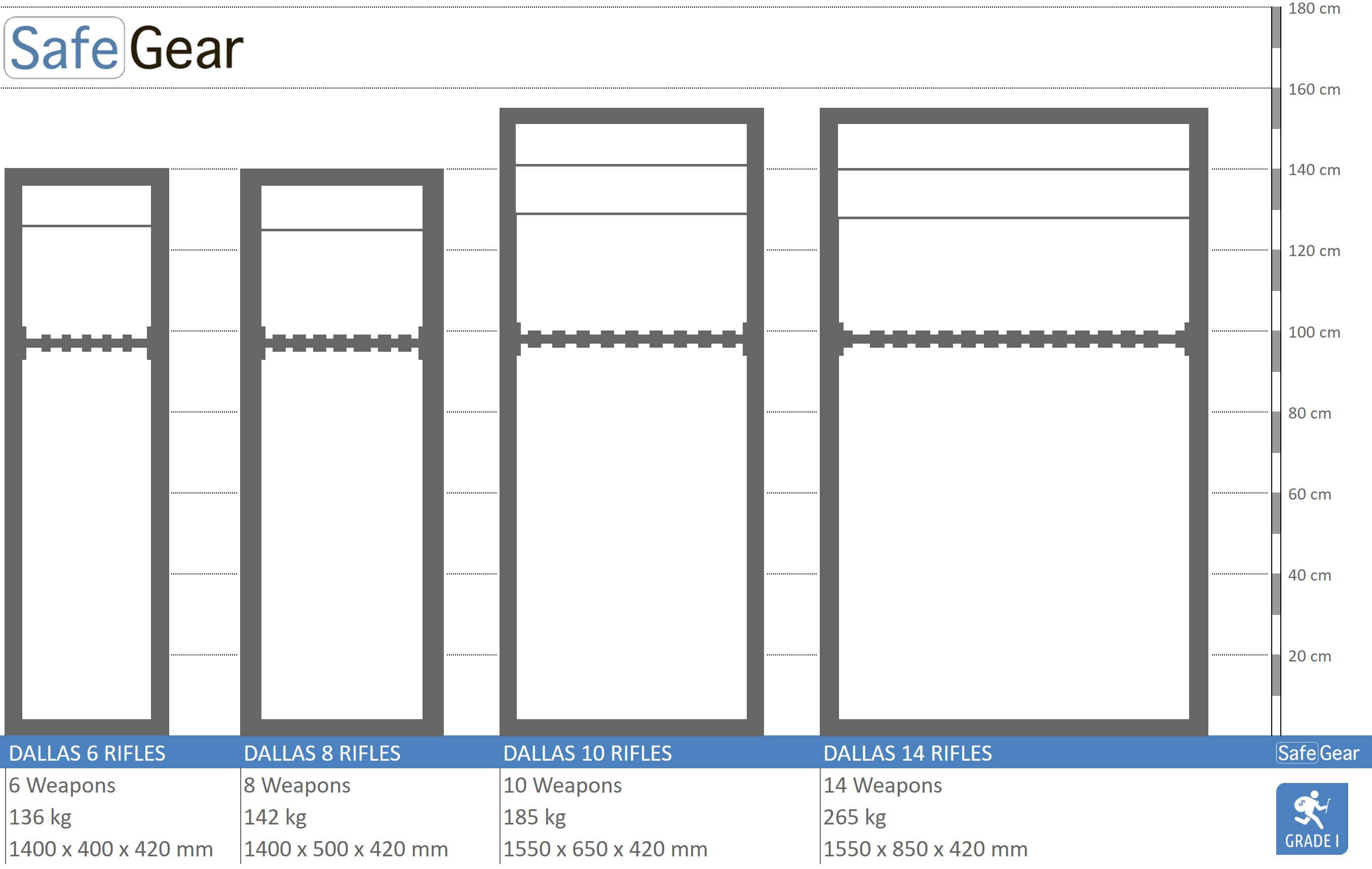 Kapacitet til opbevaring af 6-14 rifler. Våbenskabet er fremstillet i høj kvalitet til sikring af rifler, og geværer.